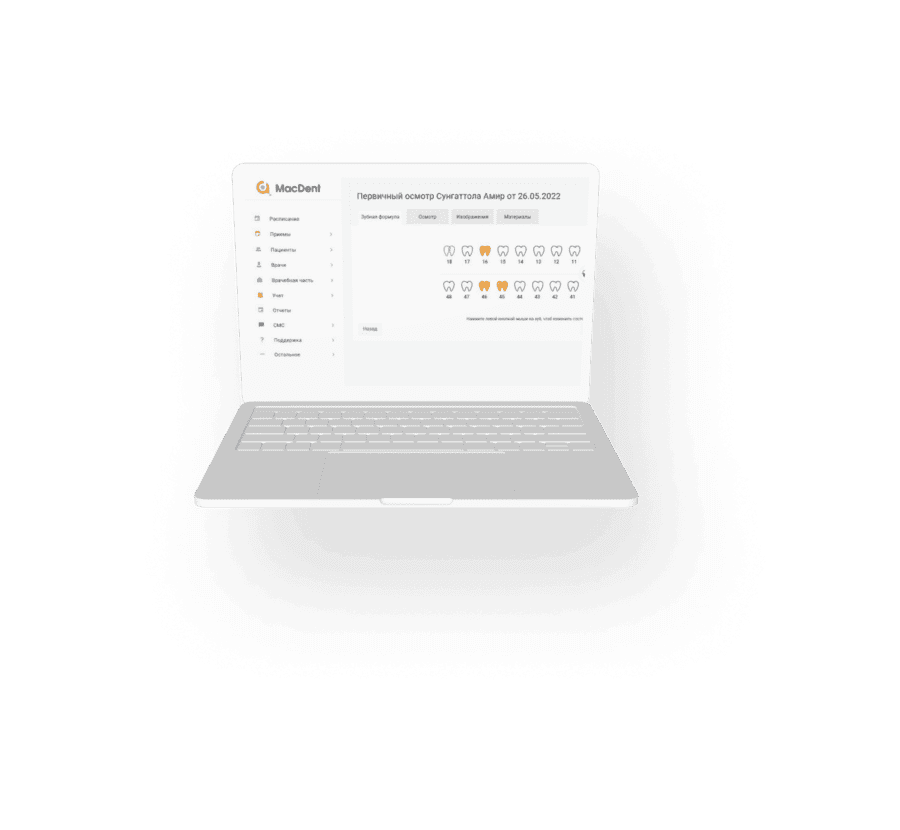 MacDent очень удобная программа где хранится база пациентов в онлайн режиме. За очень короткий период нас обучили пользоваться и мы уже на компьютерах пользуемся программой. Также мы можем найти всю нужную информацию о наших текущих пациентах, потому что программа показывает выполненные ранее услуги, даты приема, их платежи и т.д.