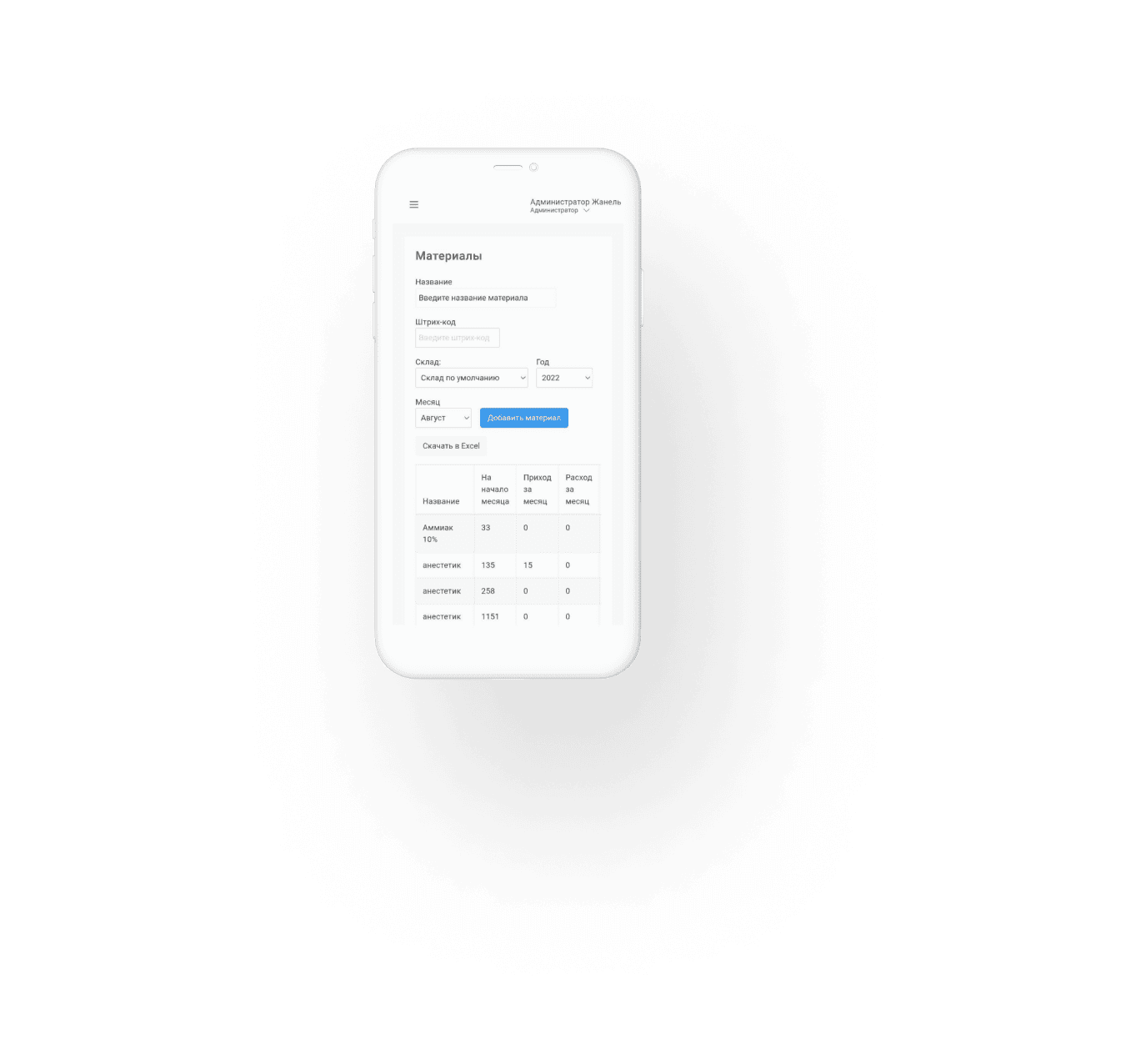 - добавление штрих-кода материала