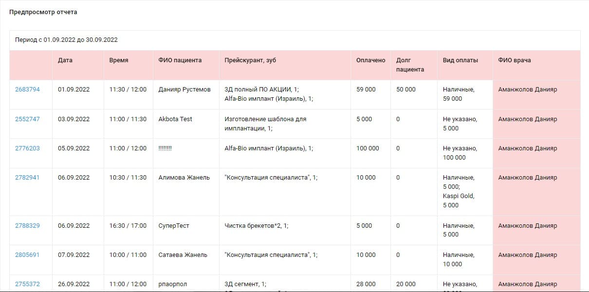 - знайте, кто из врачей приносит больше чистой прибыли