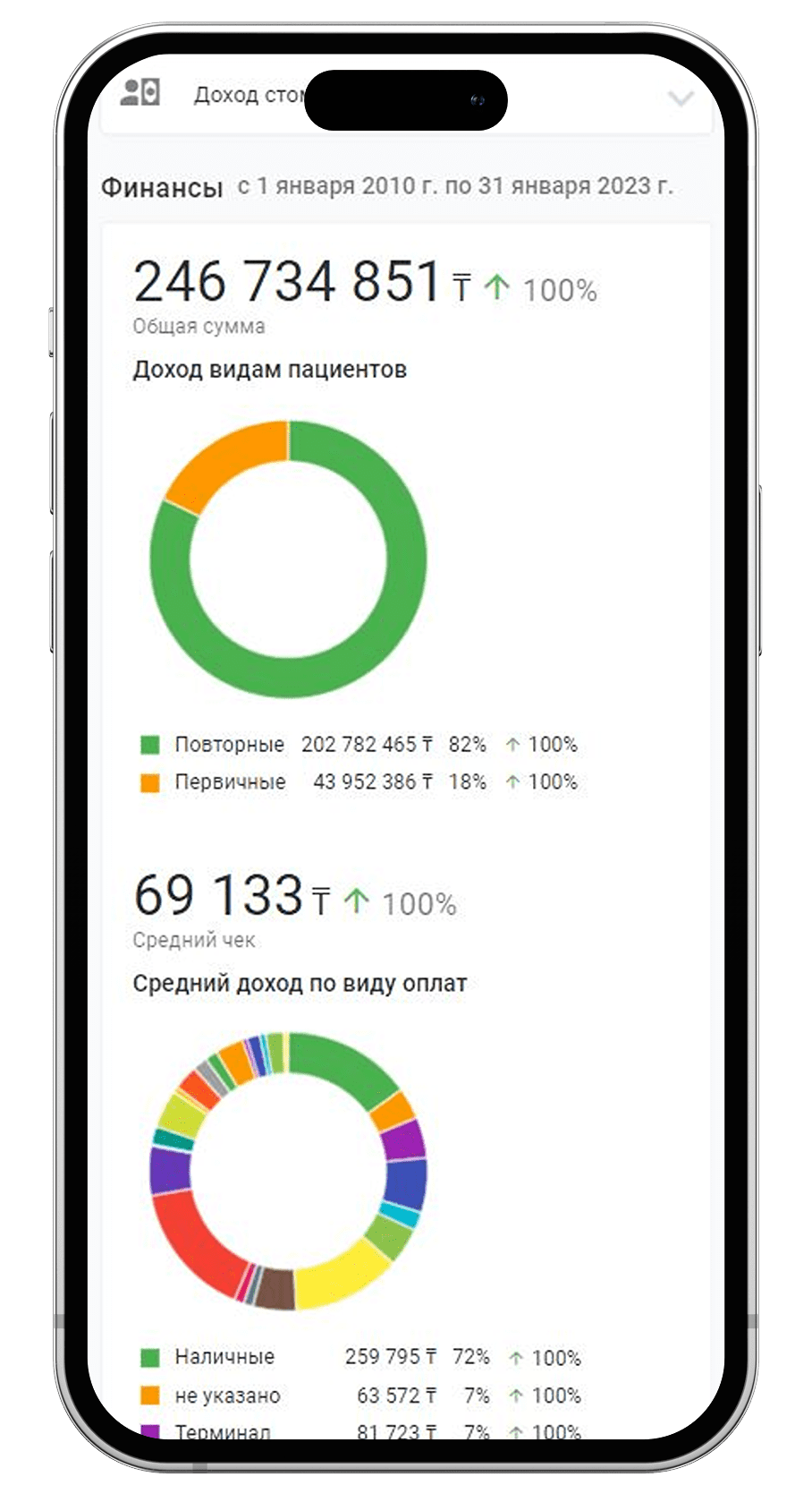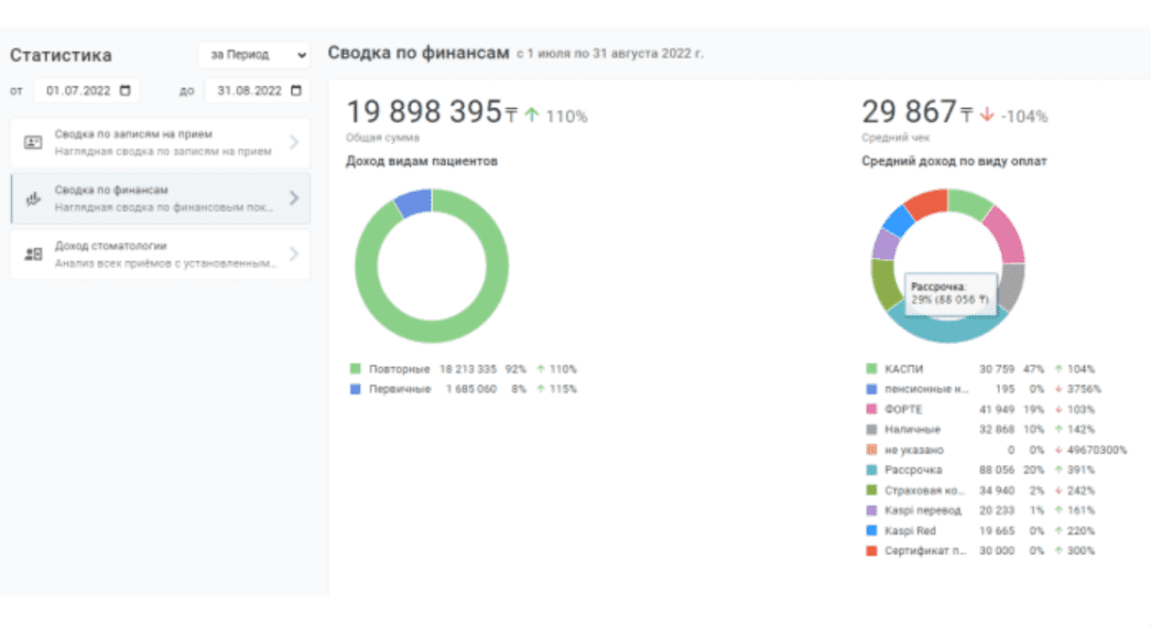 Самые важные показатели вашей стоматологии или клиники теперь доступны на главном экране в виде дашбордов