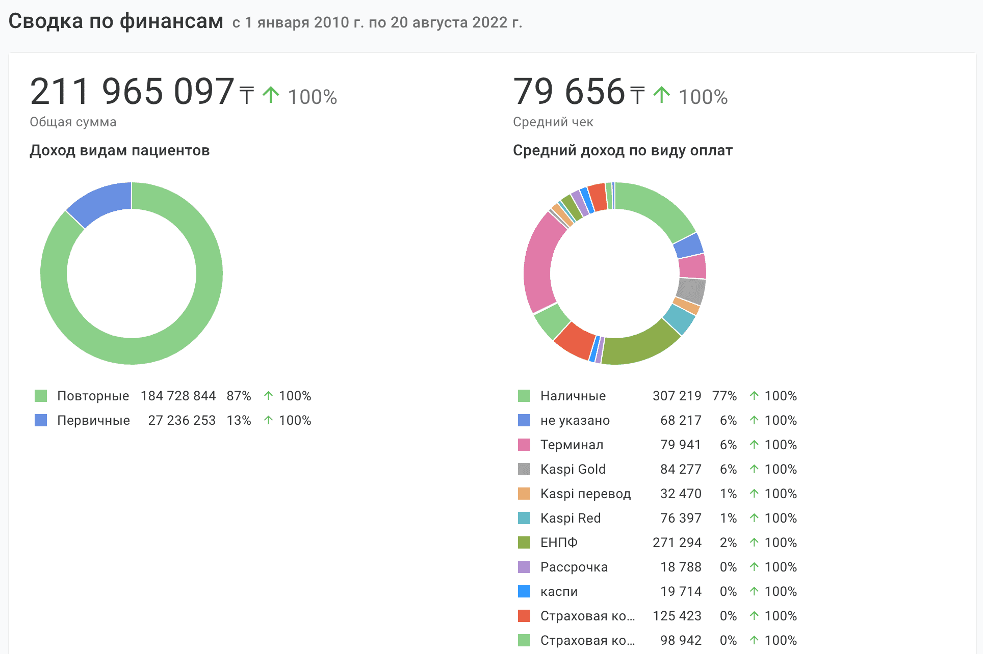 - большое количество типов оплат (наличные, каспи, ЕНПФ, терминал, страховые компании, и многое другое)